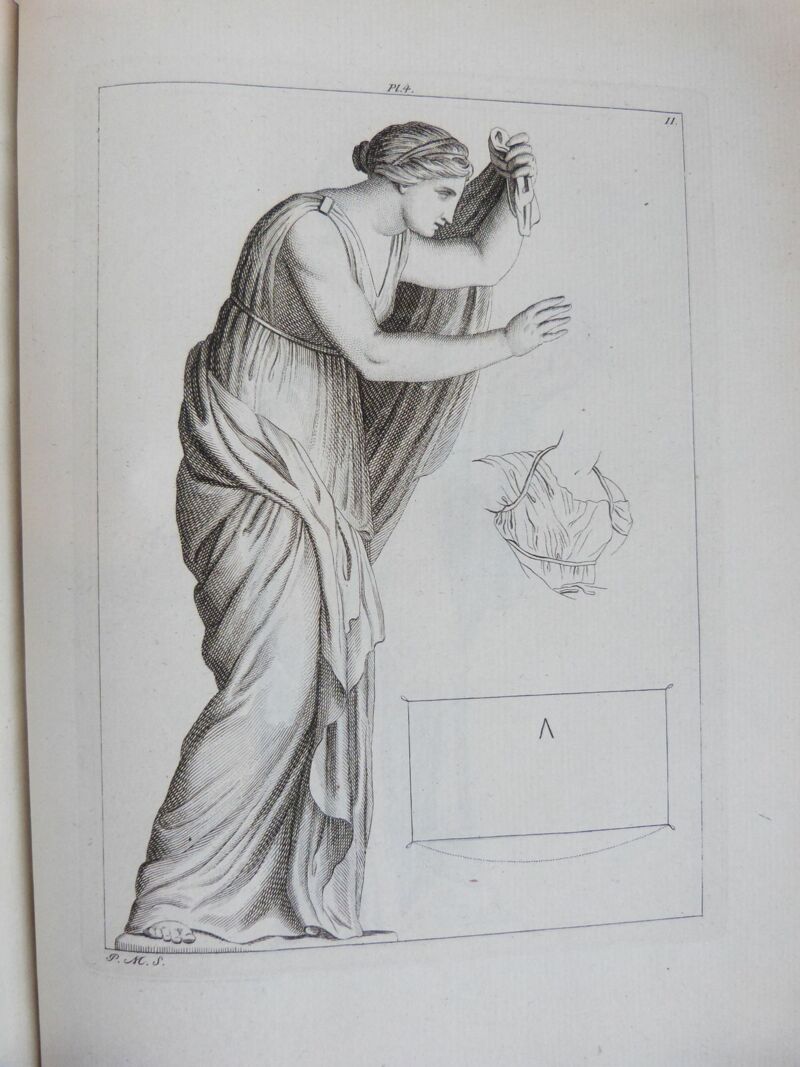 La connaissance du costume antique étant indispensable à la formation des bons peintres d'histoire, André Lens, peintre belge (Anvers, 1739-Bruxelles, 1822) y apporte ici sa contribution. Il est surtout connu pour ses traités notamment sur le Bon goût, ou la beauté en peinture. Pendant son séjour en Italie, il étudia particulièrement Raphaël et les maîtres de la Renaissance et fut particulièrement intéressé par les découvertes de Pompéï. (Colas, Bibliographie du costume, 1828).