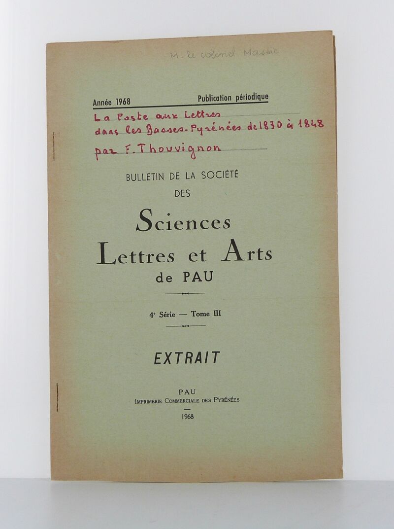 Extract from the Bulletin de la Société des Sciences, Lettres et Arts de Pau, 4th Series, Volume III, Year 1968