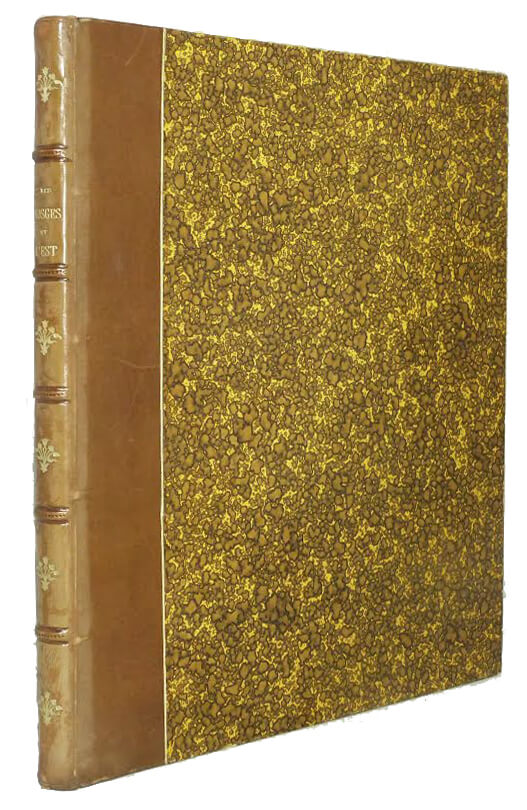 Brown half-basane binding. Spine with nerves decorated with dotted lines and golden florets. Upper speckled slice. Very fresh interior. Illustrated with many black and white photos.