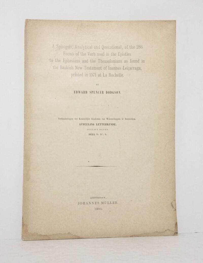 Full title: A Synopsis, Analytical and quotational, of the 286 Forms of the Verb used in the Epistles to the Ephesians and the Thessalonians as found in the Baskish New Testament of Ioanne Leiçarraga, printed in 1571 at La Rochelle by Edward Spencer Dogson