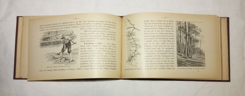 Elegant publication dating from the 19th century and praising the merits of the Gascon coast. If the text already made the idea of a trip very attractive, the illustrations representing the places to be visited in the region completed to make it irresistible.