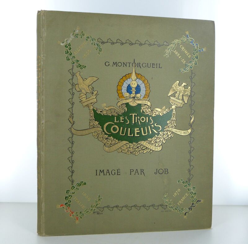 Green full percaline binding of publisher. Smooth spine with golden title in length. First dish decorated with a polychrome drawing in cocarde signed Paul Souze. Damaged upper jaw. Rubbed hairstyles. Three blood slices. Very fresh interior. Illustrated with many JOB drawings in and out of text.