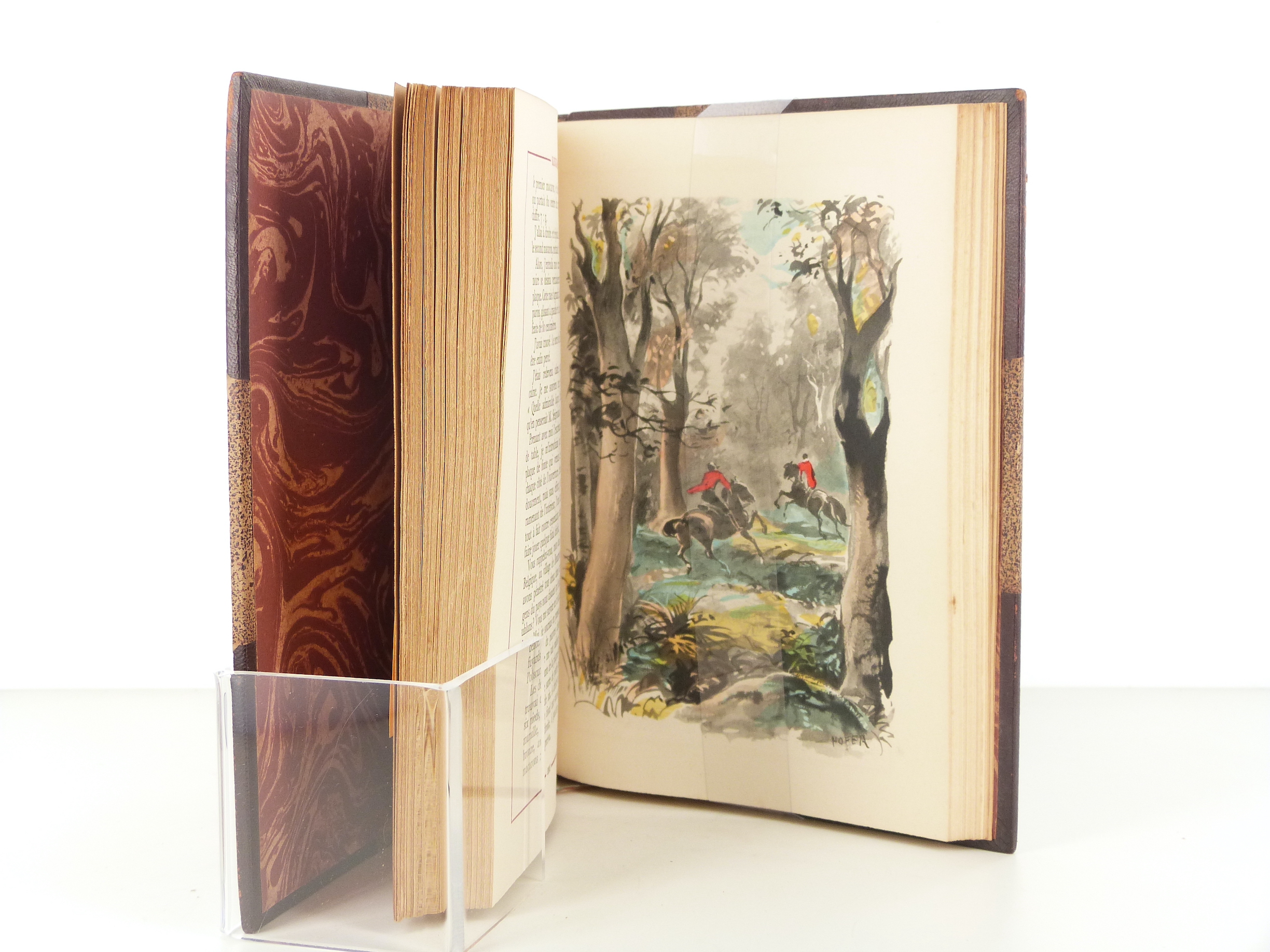 Bound in tobacco half-chagrin with corners. Spine ribbed. Cover preserved. Color and black illustrations, in and out of text. Spine lightened. Spine slightly cracked, split at head.