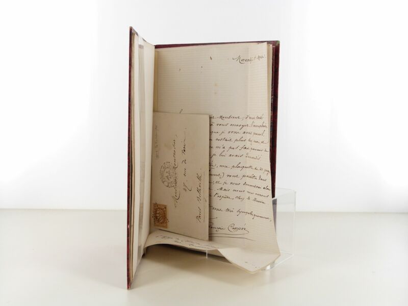 ORIGINAL EDITION of this booklet of 16 poems. Enriched with an autograph dispatch from the author to the writer Henri Nicolle and an autograph letter signed (March 4 [1868], 1 bifolium in-8, envelope preserved) addressed to a certain M. Montrozier, informing him of the forthcoming publication of his booklet Les Intimités, a small booklet of "only 400 verses".