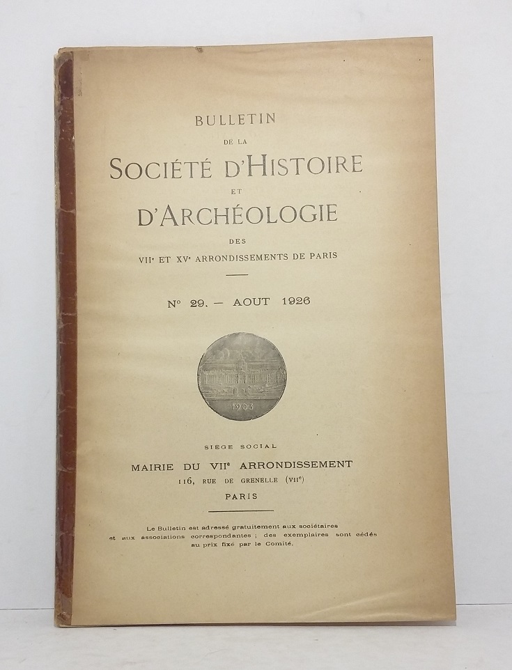 Bulletin de la Société d'Histoire et d'Archéologie des VII et XVe arrondissements de Paris : n°29. - Août 1926