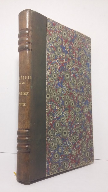 Green half calf binding. Nerve-racked back with gold author's mention and title. Back and cover preserved. Coloured head slice. Black and white illustrations made by the author off-text. Work accompanied by a yellow cloth bookmark.