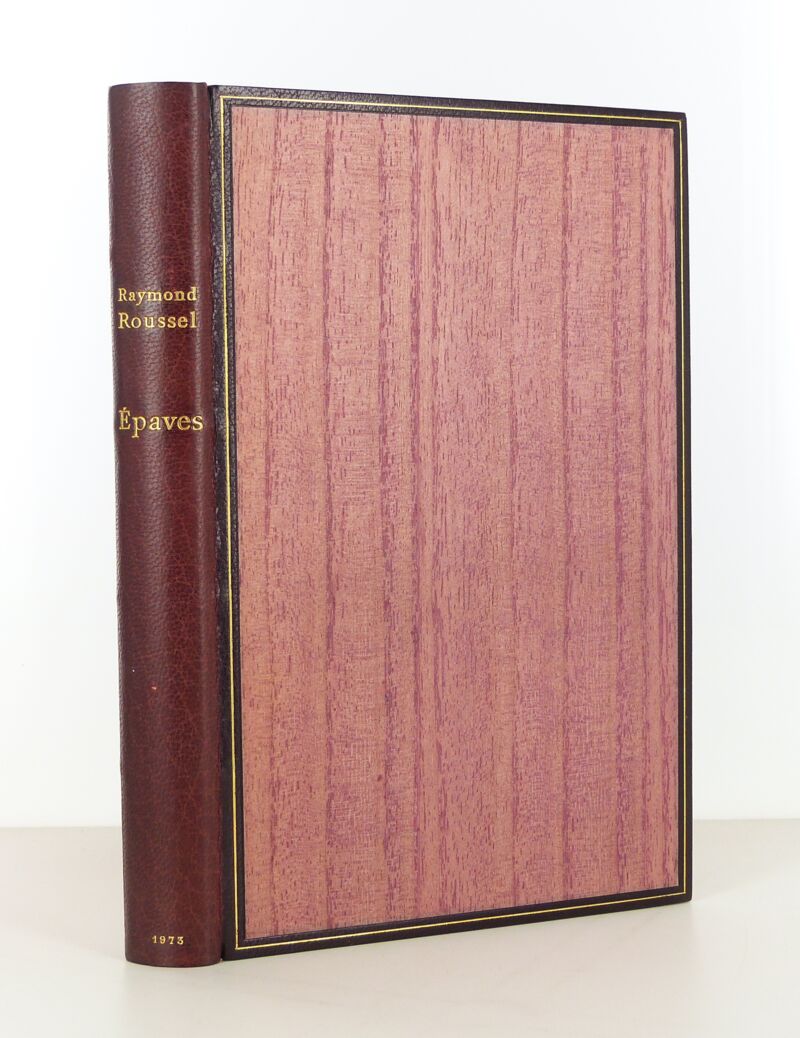 In bordered slipcase. Framed plum morocco binding. Smooth spine. Head gilt. Imitation wood paper boards. Cover and spine preserved. Binding signed J.-P. MIGUET. Edition prepared and presented by François Caradec.