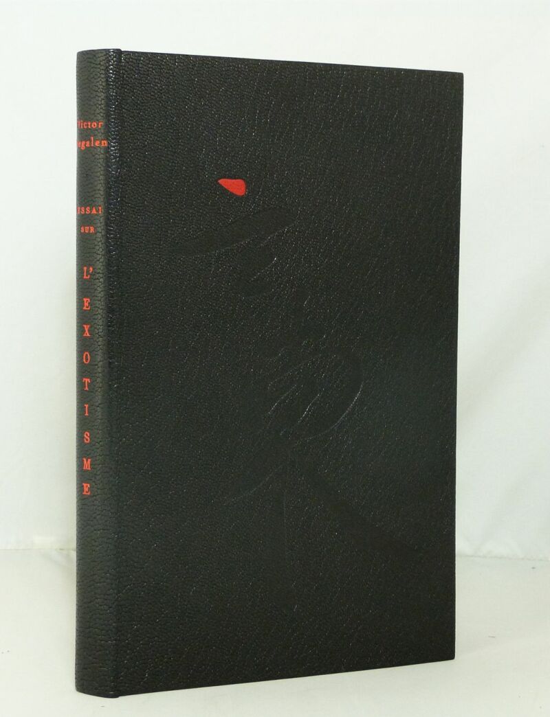 Sous étui bordé réalisé avec un beau papier rouge. Reliure pleine maroquin noir avec empreinte à froid en caractères japonais sur les deux plats. Dos lisse avec titre rouge en long. Couverture et dos conservés. Reliure signée A. BUTRÉ.