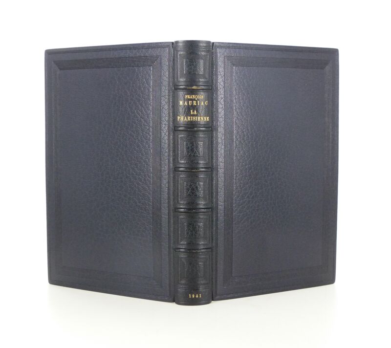 Sous étui bordé. Reliure plein maroquin bleu nuit. Dos à nerfs avec filets à froid et date dorée en queue. Filets à froid en encadrement sur les plats. Toutes tranches dorées. Filet doré sur les coupes. Doublures de box gris perle bordées d'un filet doré. Gardes de soie moirée bleu. Couverture et dos conservés. Reliure signée SEMET & PLUMELLE.
