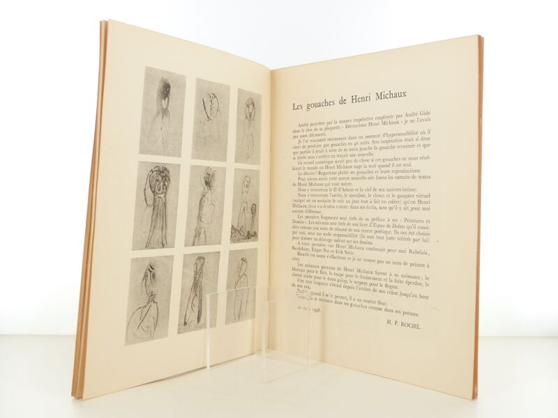 Catalog of Henri Michaux's drawings exhibited at the Galerie René Drouin, surrounded by two texts by Henri-Pierre Roché and Michel Tapié.