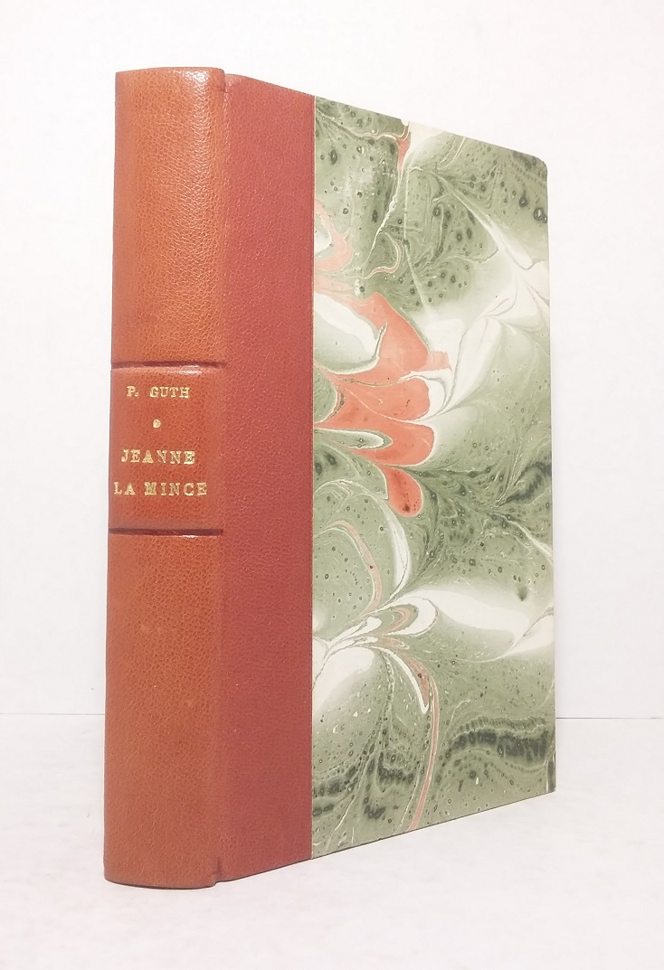 Brick-red half-shell binding. Single spine with gilt title and author's note. Remarkable binding. Unbound pages. Cover and spines preserved. Burnished paper. Bookplate in relief on the white guard.