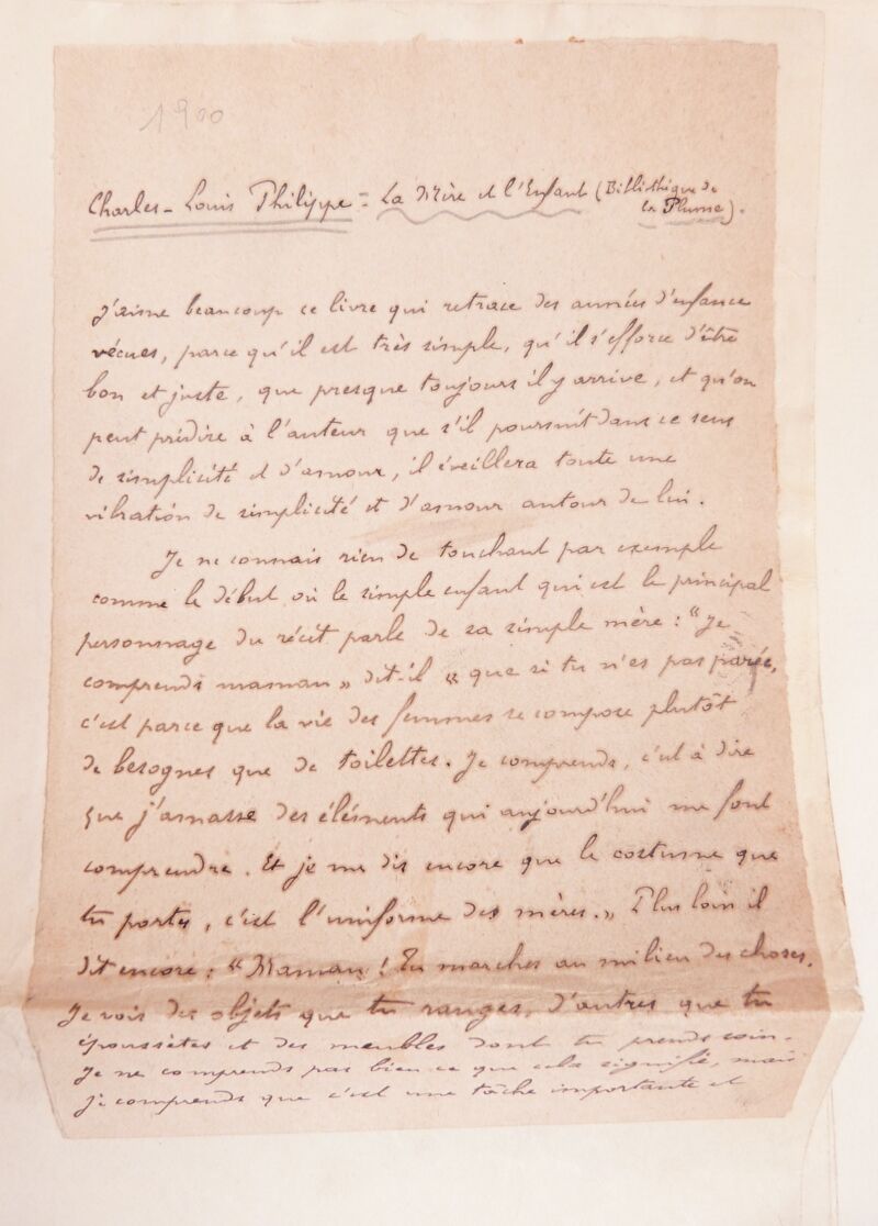 Nous joignons un intéressant manuscrit autographe signé de Maurice Beaubourg, compte-rendu de l'ouvrage à l'occasion de sa parution en 1900.