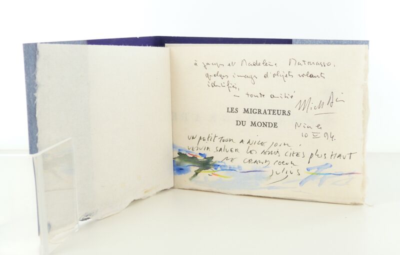 Enrichi de deux envois de Michel Déon et Julius Balthazar à Jacques Matarasso illustrés d’une petite AQUARELLE.