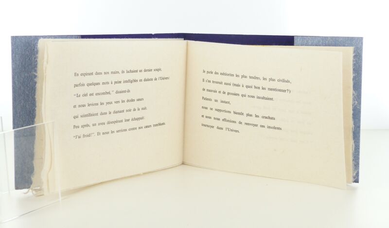 Couverture souple bleu à rabats. Illustrée de deux COMPOSITIONS originales PEINTES à l'aquarelle par Julius Baltazar.
