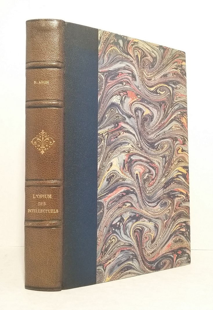 Navy-blue half-shell binding. Insolated spine with four jumped nerves with fillets, gilt author's name and title in the boxes. Colored cover preserved in good condition. Unbound pages. Burnished paper. Contents decorated with black and white reproductions in off-text. Ex-libris in relief. Nice copy.