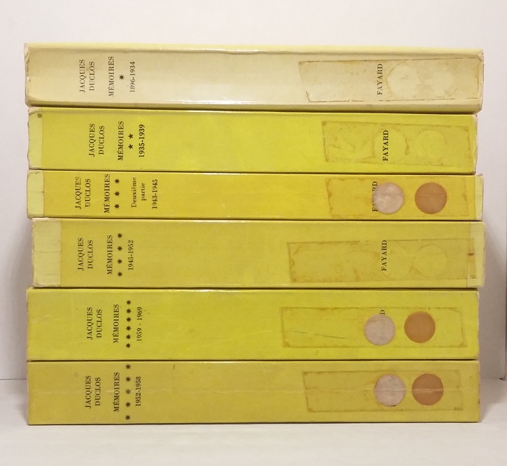 Collection including the first 6 volumes of the Memoirs of Jacques Duclos, minus the first part of the third volume. Although not complete, this series of books does not lack anecdotes on the career of this former pastry cook - Jacques Duclos - who became a politician and defended his life as well as his communist opinions.