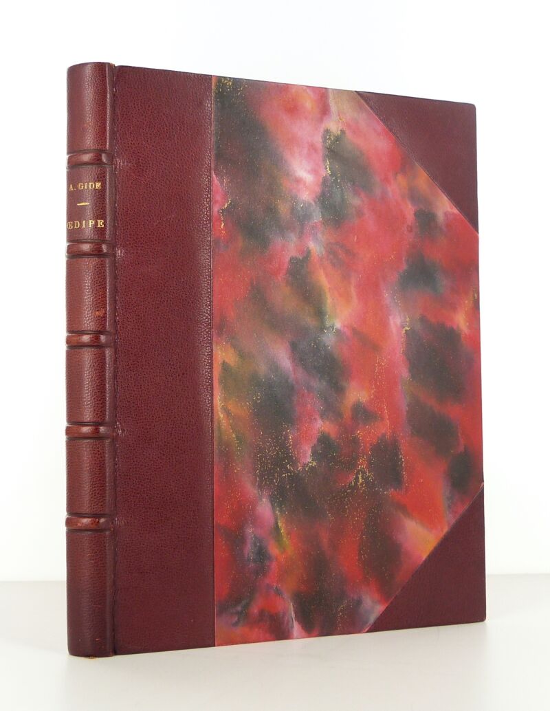 Bound in burgundy half-chagrin with corners. Spine ribbed. Head gilt. Cover and spine preserved. Frontispiece by D. Galanis.