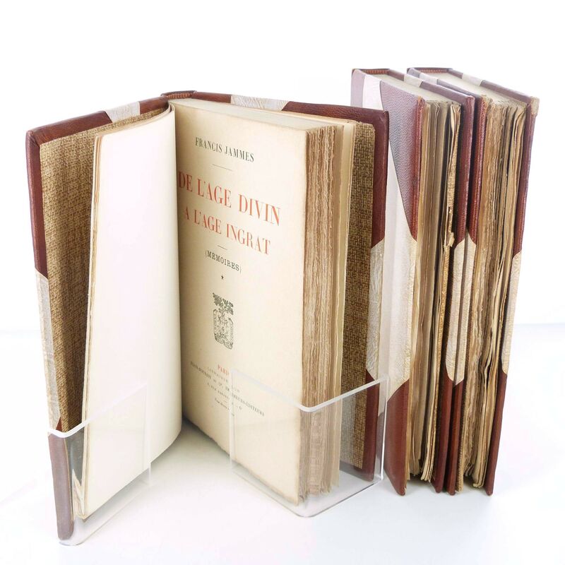 Attached to this first edition of the Memoirs is an autograph letter signed by Francis Jammes, dated October 20, 1920 in Hasparren (3 p. in-4), addressed to a friend, in which he castigates the behavior of his publisher Plon, "a merchant who [however] calculates pennies. in-4) addressed to a friend, in which he criticizes the behavior of his publisher Plon "a merchant who [however] calculates to the penny how much an author brings him" but who, curiously, does not seek to sell him, to push his works, and with Plon Jammes also attacks contemporary criticism: "But just look at a bookshop front from the front! When do you see me there?".