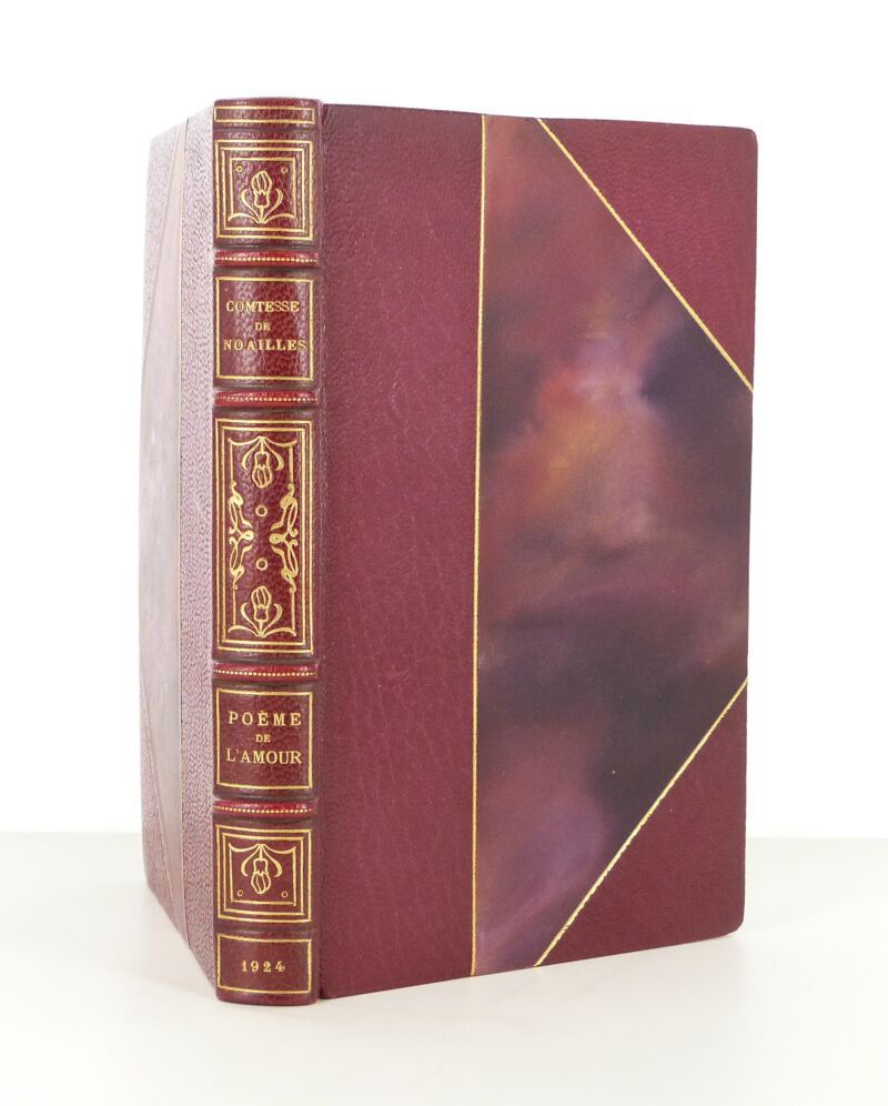 Reliure demi-maroquin lie-de-vin à coins. Dos à nerfs orné de caissons dorés. Tête dorée. Couverture avec pliures et dos conservés. Papier jauni.