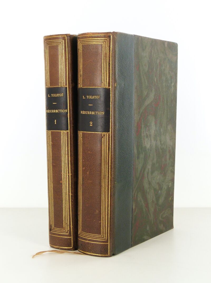 Reliure demi-chagrin vert. Dos lisse passé avec pièce de titre noire. Tête dorée. Couvertures illustrées conservées. Traduit du russe par J. W. Bienstock. Papier bruni. Portrait frontispice de l'auteur.