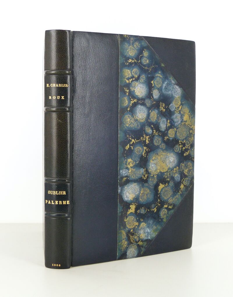 Bound in blue half-chagrin with corners. Spine ribbed. Head gilt. Cover and spine preserved.