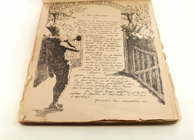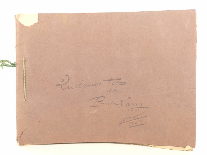 RARE WITNESS OF THE FIRST WORLD WAR, entitled "Quelques têtes du Pont-Long", dated 1918 in Pau and signed by a certain J. H. Chapelle. This is a collection of some fifty portraits of military personnel who worked at the Pont-Long military aviation school, the famous moor known for having hosted the world's first aviation school, that of the Wright brothers from 1908, before becoming the home of military aviation.