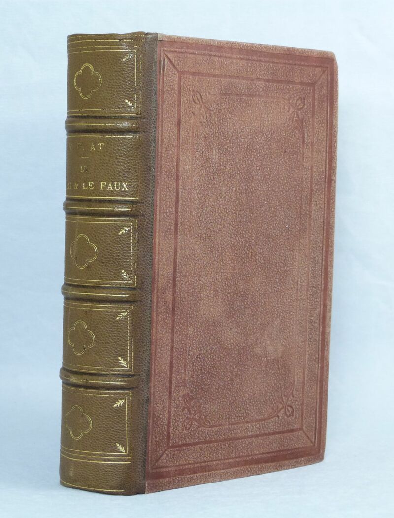 Binding brown half-chagrin. Spine with raised bands decorated with golden boxes. Dishes decorated with cold fillets. Three jaspered slices. Clean and fresh interior. Missing the last sheet.