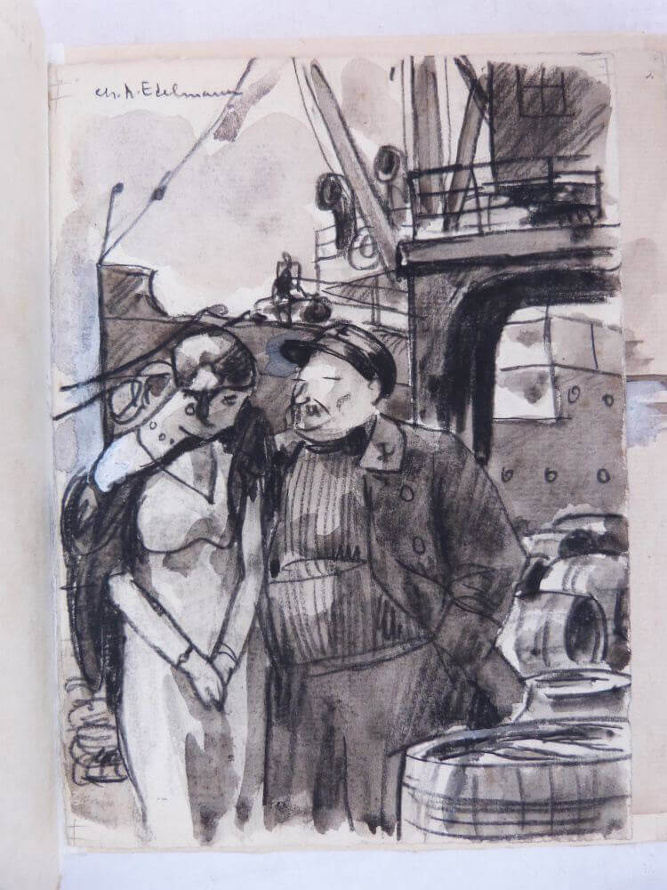 Unique copy enriched with 4 ORIGINAL DRAWINGS in Indian ink signed by the artist, one of which is dedicated "For the old navigator Valère Bachmann".