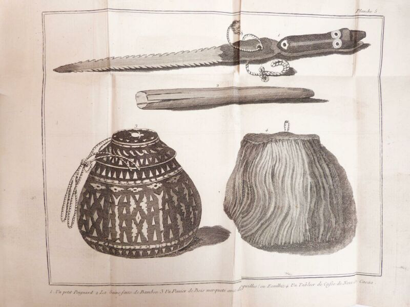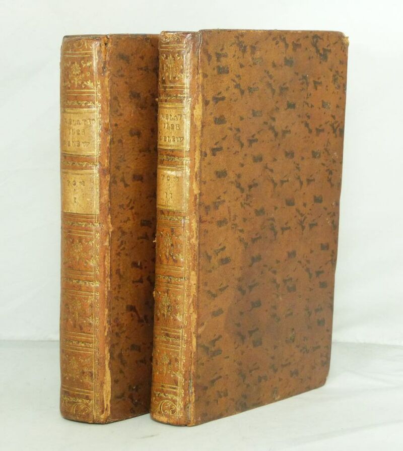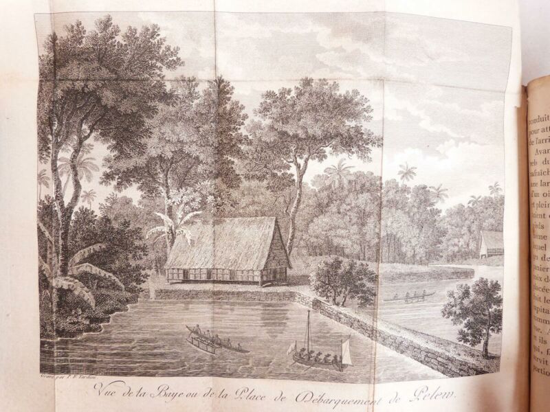 Period full marbled basane binding. Smooth, ornate spine. Marbled slices. The edition is adorned with a portrait of Captain Wilson engraved by Sophie Massard after Russell, a folding map of the Pelew Islands, and 15 plates, including 12 folding plates, engraved in intaglio by De Gouy, Pierre François Tardieu, Miss Kent after Devis and S. Jouan.