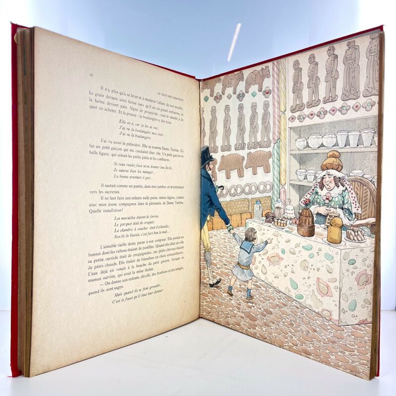 Full illustrated canvas editor's binder. Smooth, silent spine with small snags. First dish decorated with bevelled edges. Three golden slices. Fragile inner jaw. Very clean interior, with beautiful color illustrations by JOB.