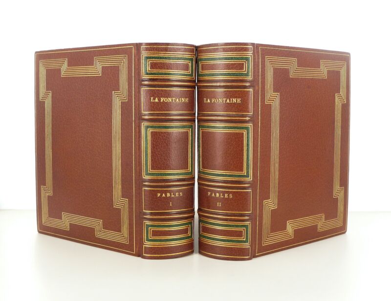 Sous étui bordé et sous chemise en demi-maroquin marron. Reliure plein marron marron. Dos à nerfs orné de filets dorés. Six filets dorés décorant les plats. Tête dorée. Couverture et dos conservés. Reliure signée BOUTAN.