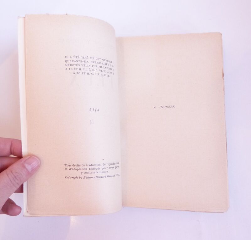 ÉDITION ORIGINALE limitée à 46 exemplaires. Un des 30 exemplaires numérotés sur Alfa, second papier après 16 sur pur fil.