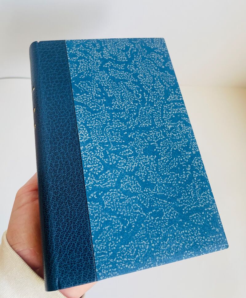 Reliure postérieure demi-maroquin bleu. Dos lisse avec titre et date en queue. Tête dorée. Couverture et dos conservés. Reliure signée BOICHOT.