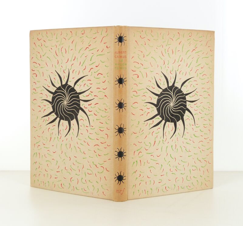 Creamy editor's cardboard from Mario Prassinos' design. Burnished back and yellowed flats around the edges.