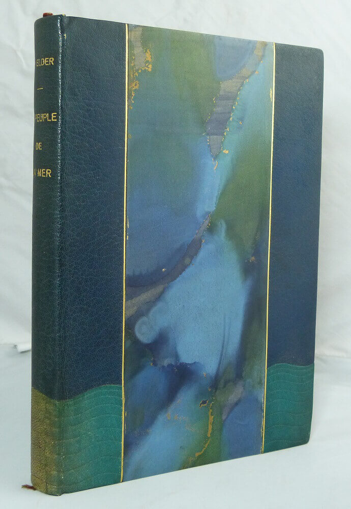 Turquoise half-marbled binding with mosaic stripes. Smooth spine with golden title and author. Top edge gilt. Original paper covers and spine bound in. Binding signed L. BUYER. Very fresh interior. Illustrated with 111 colour woodcuts by A.-M. MARTIN.